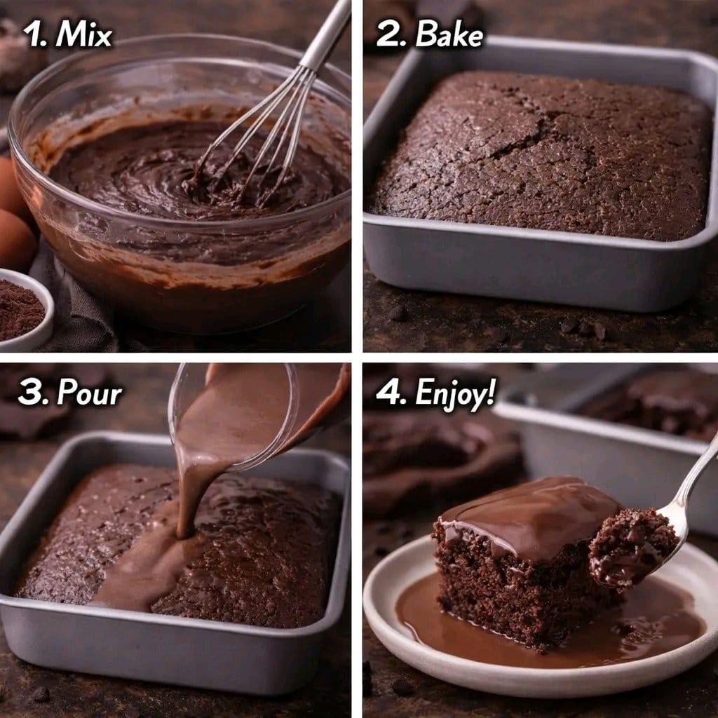 Mix β†’ Bake 30 min at 180Β°C β†’ Pour chocolate milk β†’ Chill β†’ DONE 😍