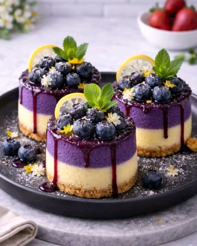 Smooth, creamy, and covered in that glossy berry glaze… these blueberry mousse cakes look straight out of a luxury bakery 🤤